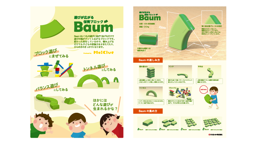 量産前にユーザーや顧客へ製品の魅力を伝えるためのカタログを作成した。Baumを手にすることで得られる価値や楽しさが伝わるように工夫した。
