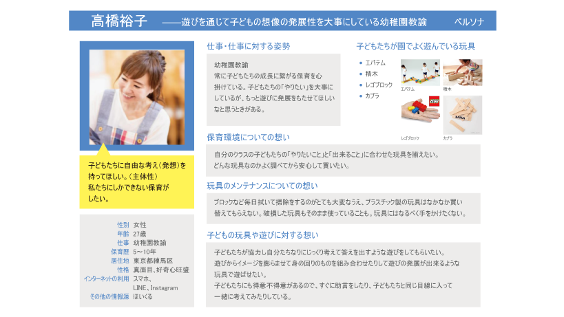 保育者へのインタビューから保育玩具に対するインサイトを導いた。