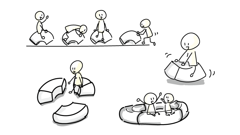 インタビューの中から得られた情報の「抽象的な形状のほうが子どもは飽きにくい」ということと、「組み合わせて遊ぶ」 ということからアイデアを展開していった。