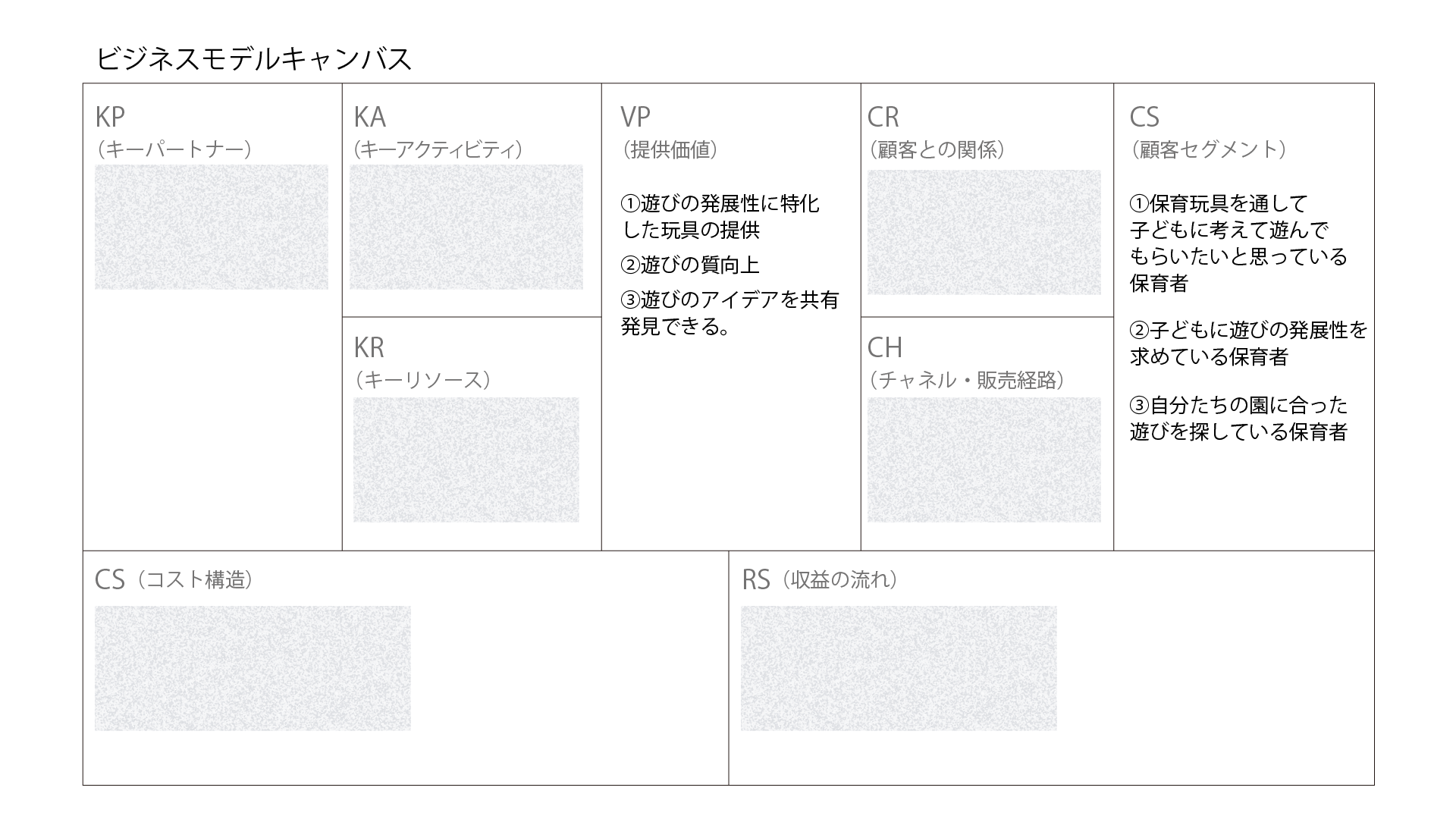 ビジネスモデルキャンバスを作成。ステークホルダーとの関係性などサービス全体の流れを確認。