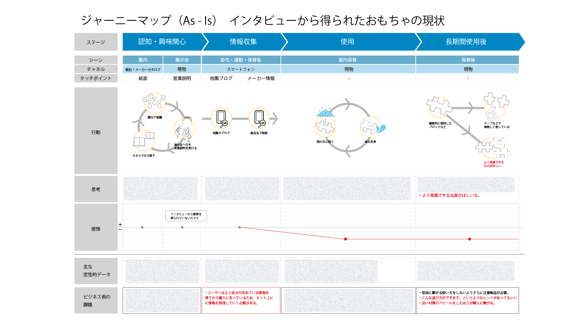 これらを改善することで、継続的に使用満足度が高い玩具やサービスが展開できると考えた。