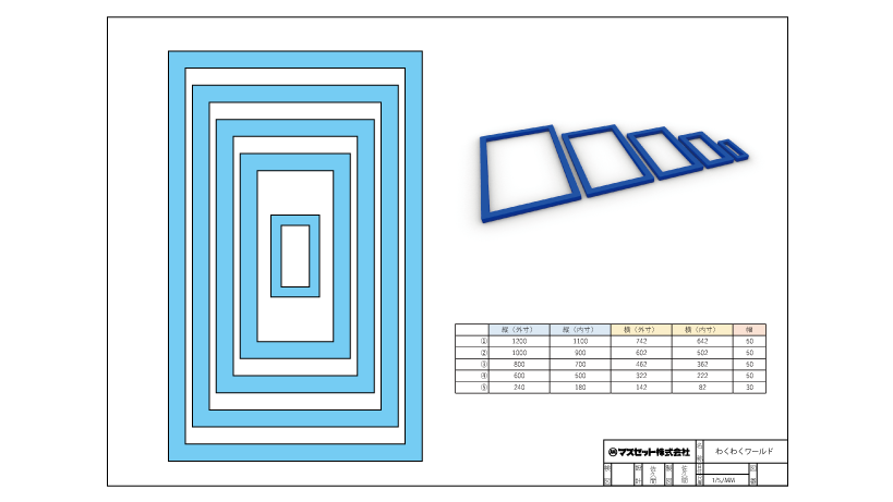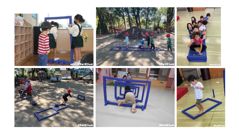 枠をくぐって遊ぶことを想定して、年長児の平均身長を最大サイズとしてサイズ展開をしていった。