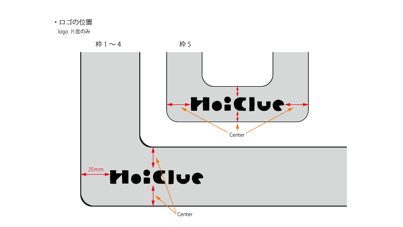 ロゴをレーザーで焼きつけ仕様とし位置など細かく決定した。