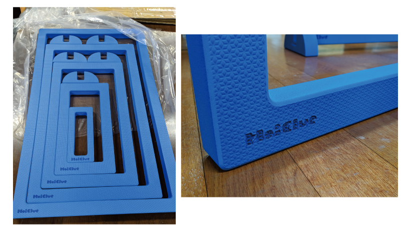 柔らかい素材のEVA発泡樹脂で試作を作った。柔らかく安全だが、自立しにくいなどデメリットもあった。